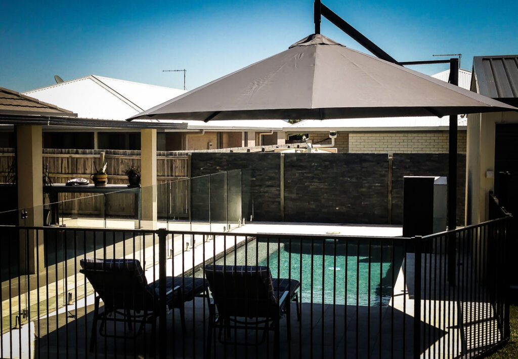 To compliment your new or renovated Boomerang Pool, we distribute the unique Revolvashade™ range of outdoor shade umbrellas. Features of Revolvashade™ range of umbrellas: